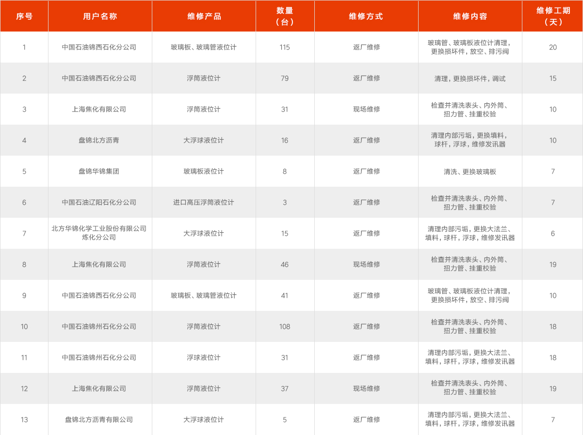 業(yè)績(部分檢維修服務(wù)統(tǒng)計)